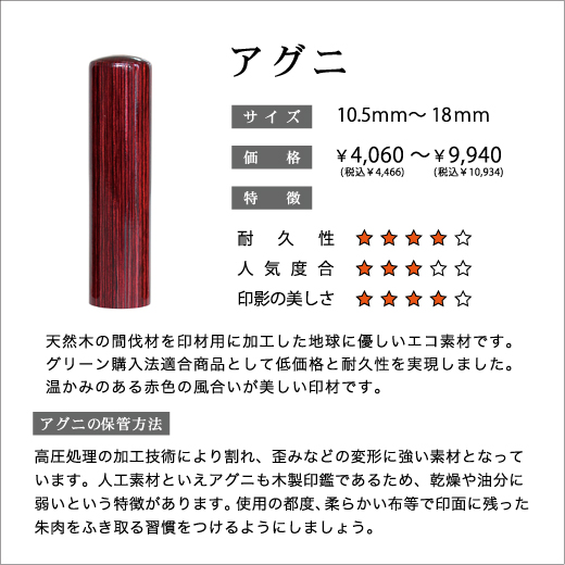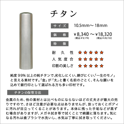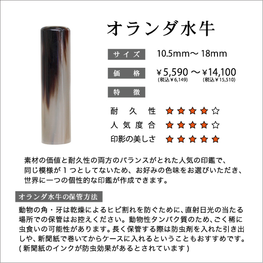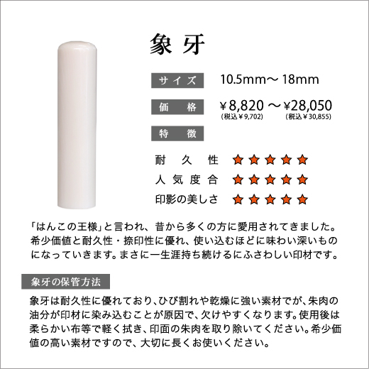 実印・銀行印はお手頃な木製の素材から耐久性に優れた素材まで各種取り揃えております。